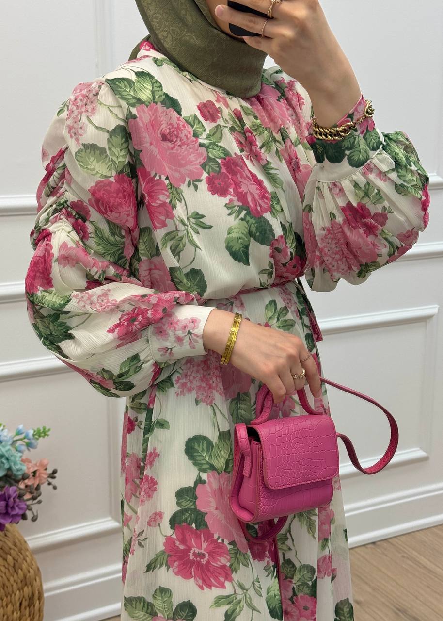 Designed with a modest, full-length silhouette, the Amira offers both comfort and sophistication. The puffed sleeves and round neckline add a soft, refined touch, making it perfect for both daytime outings and special occasions.