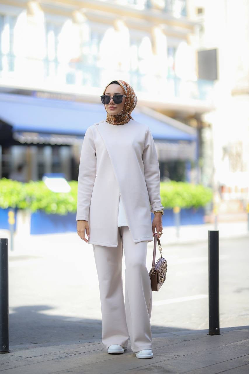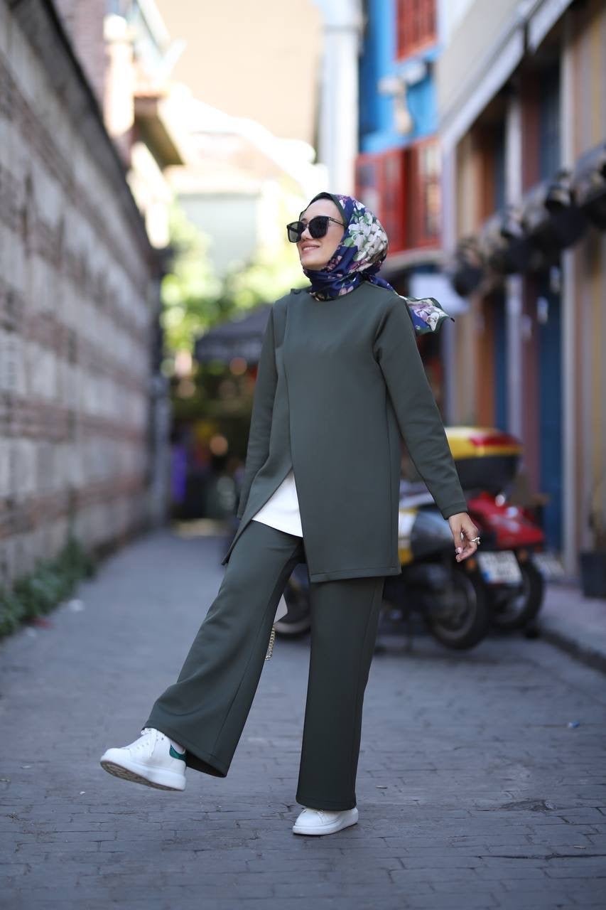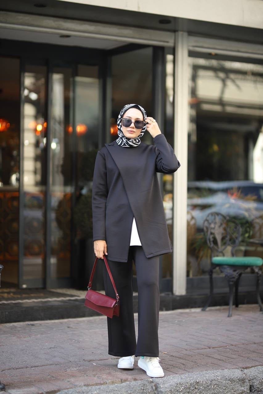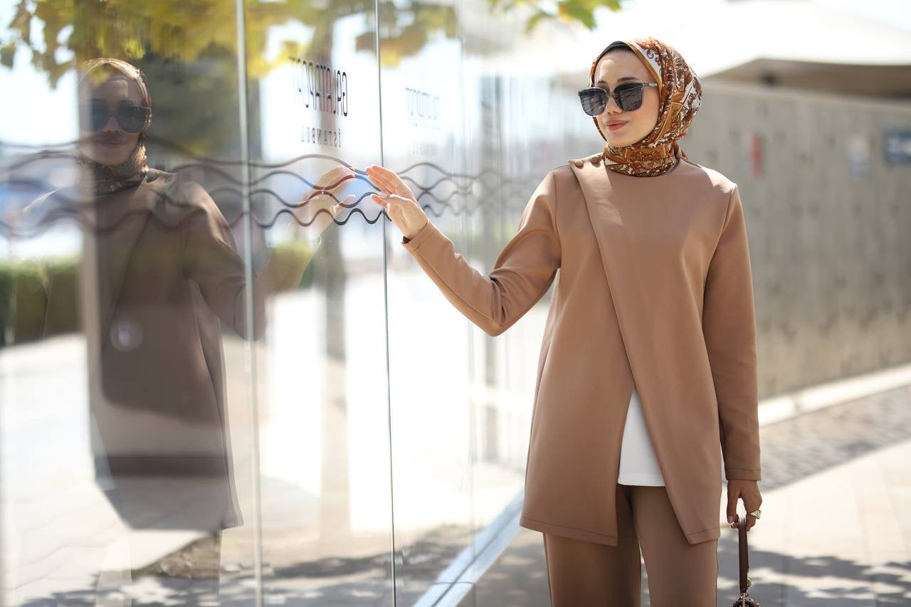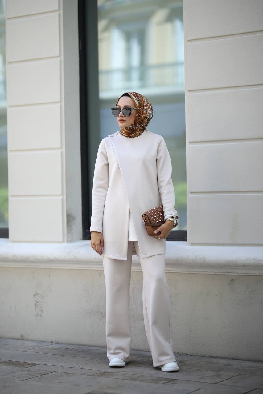 Refined and elegant, our three-piece modest set in rich colors offers a perfect blend of comfort and sophistication. This set includes a chic open-front top, wide-leg pants, and a versatile inner layer, making it a staple for any modest wardrobe. The relaxed yet tailored fit ensures a flattering silhouette, while the soft, premium scuba fabric provides comfort and breathability.