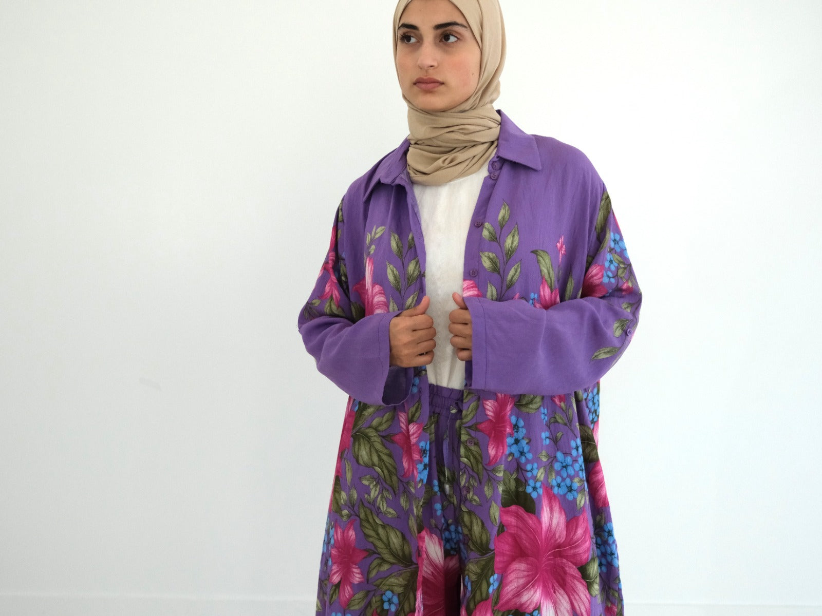 Crafted from a breathable and soft polyviscose blend, this Petals & Purple Pant Set is not only comfortable, but also wrinkle resistant. The long tunic features a shirt collar and full button down design, while the pants have an elastic waistband and convenient pockets. Stay modest and stylish with this versatile pant set.