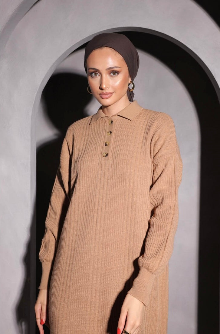 Ideal for cooler seasons, this versatile dress in a warm neutral tone is perfect for casual outings or semi-formal occasions. Pair it with sneakers for a relaxed vibe or elevate the look with boots and accessories for a more refined style. A must-have staple for your modest wardrobe!