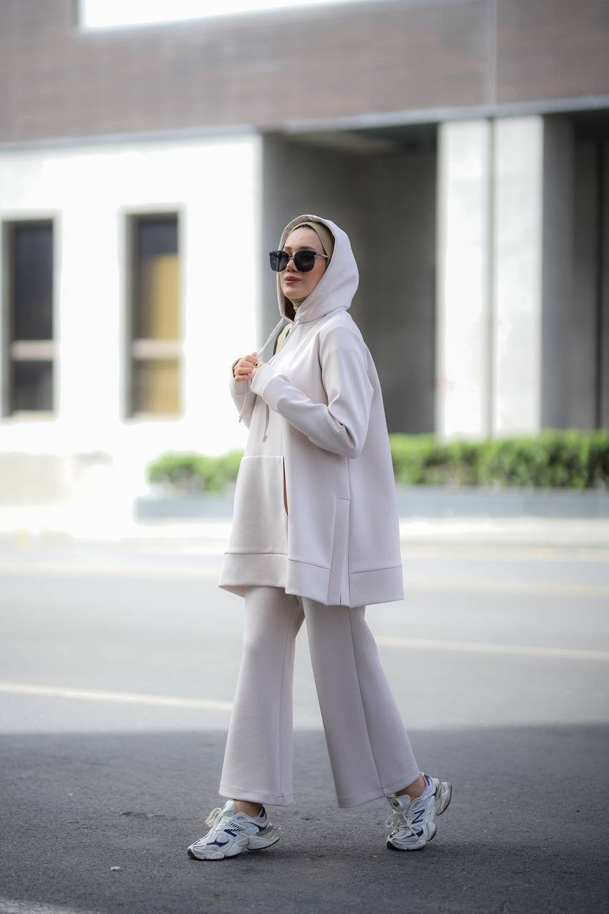 Elevate your wardrobe with our effortlessly chic modest lounge set. This two-piece ensemble features a relaxed-fit hoodie and wide-leg pants, designed for ultimate comfort without compromising on style. Crafted from premium, soft-touch scuba fabric, it drapes beautifully, offering both coverage and elegance.